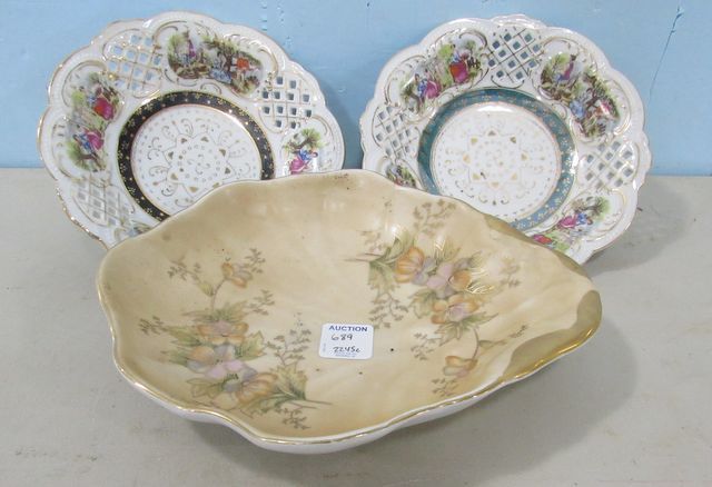 689 Hand Painted Royal Crown Dish and Two Porcelain Dishes