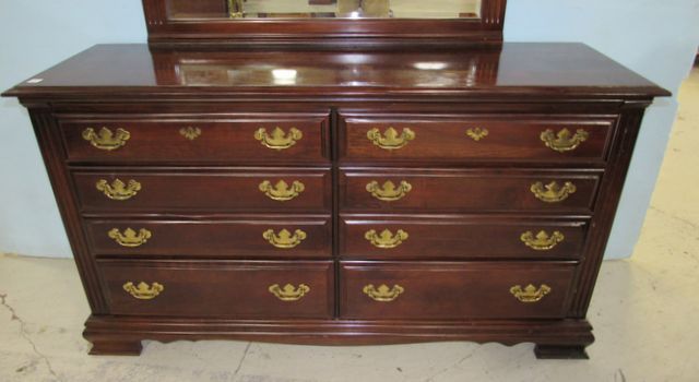 Chippendale pulls, Modern Cherry Double Dresserwith mirror, eight drawers, 32"h., 58"w., 18"d. Chippendale pulls, Modern Cherry Double Dresserwith mirror, eight drawers, 32"h., 58"w., 18"d.