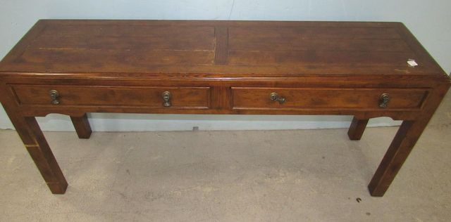 Has some finish wear, two drawers, 27"h., 59"w., 16"d. Has some finish wear, two drawers, 27"h., 59"w., 16"d.