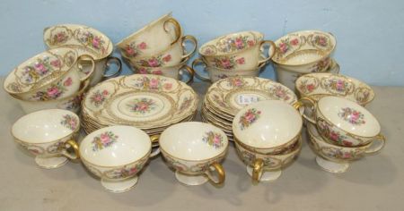 Germany, hand painted porcelain, 8 small saucers, seven cups, six saucers, twelve cups. Germany, hand painted porcelain, 8 small saucers, seven cups, six saucers, twelve cups.