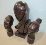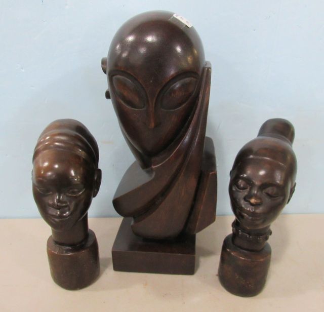 One is wood carved 14"h., two metal composte 9"h. One is wood carved 14"h., two metal composte 9"h.