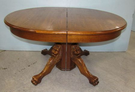 Lion head carved legs, claw feet, 29"h., no leaves, 54"w. Lion head carved legs, claw feet, 29"h., no leaves, 54"w.