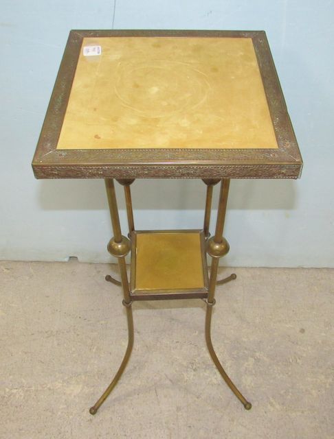 Ornate brass trim, felt top, 32"h., 12"w. Ornate brass trim, felt top, 32"h., 12"w.