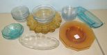 Light blue etched bowls, dish, orange depression plates 9"dia., plates. 23 total. Light blue etched bowls, dish, orange depression plates 9"dia., plates. 23 total.