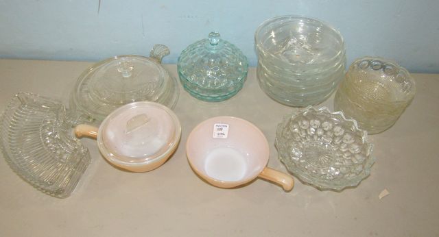 White hall dish, covered dish, berry bowls, Fire King Oven ware container, and etc. 17 total. White hall dish, covered dish, berry bowls, Fire King Oven ware container, and etc. 17 total.