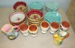 Stangl pottery dinnerware bowls, Signed glazed pottery apple dishes, hand painted cups, Slovakia hand painted parrot, damaged tip, 28 total. Stangl pottery dinnerware bowls, Signed glazed pottery apple dishes, hand painted cups, Slovakia hand painted parrot, damaged tip, 28 total.