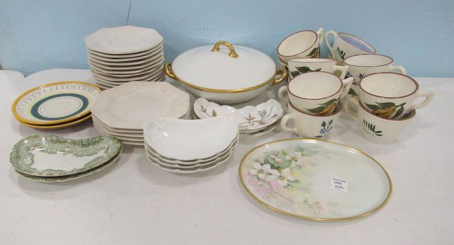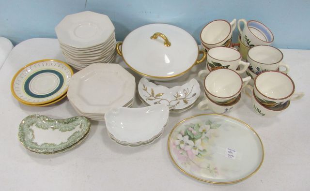 Nikko saucers, plates, Stangl pottery saucers, cups, TW limoge plate, limoge covered dish, 41 total. Nikko saucers, plates, Stangl pottery saucers, cups, TW limoge plate, limoge covered dish, 41 total.