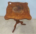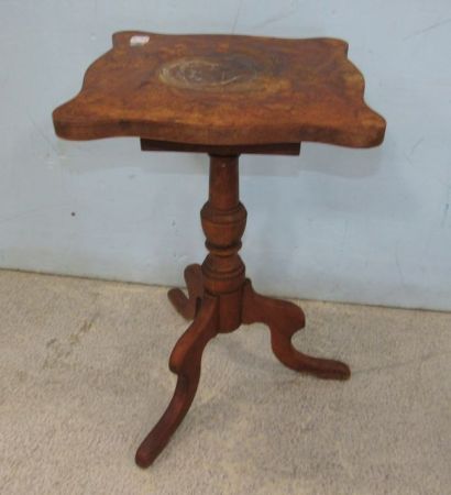 Two pull out drawers, finish is worn, has inlaid center medallion, 22"h., 19"w. Two pull out drawers, finish is worn, has inlaid center medallion, 22"h., 19"w.