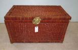 Brass hardware, lift top trunk, some loose wicker, 20"h., 36"w. Brass hardware, lift top trunk, some loose wicker, 20"h., 36"w.