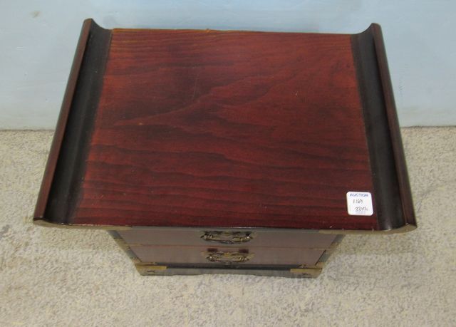 Wood damage on back of top, brass ormolu trim, 10"h., 15"w. Wood damage on back of top, brass ormolu trim, 10"h., 15"w.