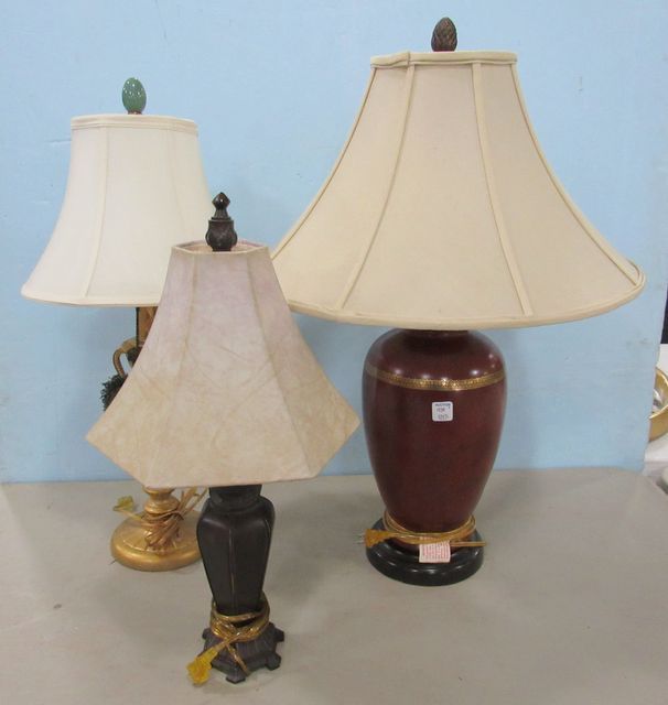 Red resin vase lamp 28"h., black resin vase lamp, gold metal decor lamp. Red resin vase lamp 28"h., black resin vase lamp, gold metal decor lamp.
