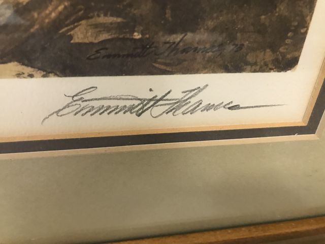 Signed Emmitt Thames Artist Proof Print, signed in pencil, matted, framed, 22"h., 28"w. Signed Emmitt Thames Artist Proof Print, signed in pencil, matted, framed, 22"h., 28"w.