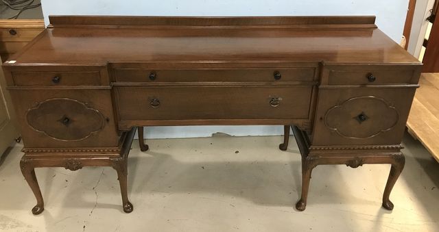 Vintage Berkey & Gay Queen Anne Sideboard/buffet, two center drawers, two doors, two side drawers, pedestal sides, good condition, markers label, 39"h., 72"w., 28"d. Vintage Berkey & Gay Queen Anne Sideboard/buffet, two center drawers, two doors, two side drawers, pedestal sides, good condition, markers label, 39"h., 72"w., 28"d.