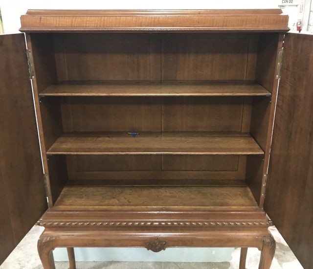 Vintage Berkey & Gay Queen Anne China China, double door, great size, two display shelves with plate slots, 60"h., 40"w., 12"d. Vintage Berkey & Gay Queen Anne China China, double door, great size, two display shelves with plate slots, 60"h., 40"w., 12"d.