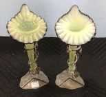 316 Pair of Glass Opalescent Horn Flutes