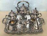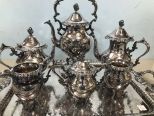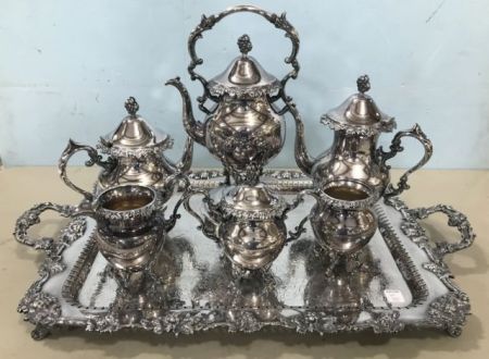 319 Antique Silver Plate Baroque 7pc Coffee Tea Set with Tray
