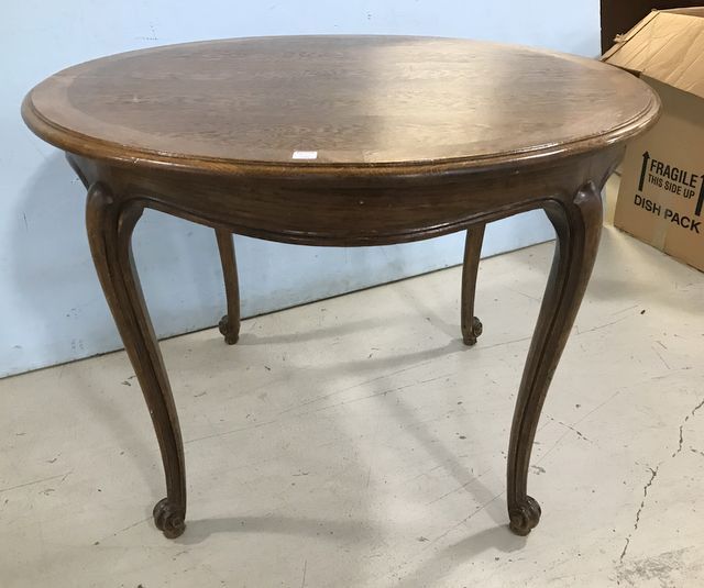 Vintage French Style Round Oak Table, minor scratches on finish, 28"h., 39"dia. Vintage French Style Round Oak Table, minor scratches on finish, 28"h., 39"dia.