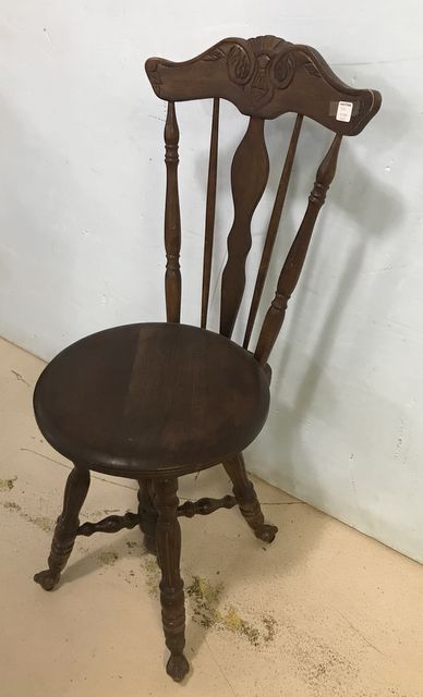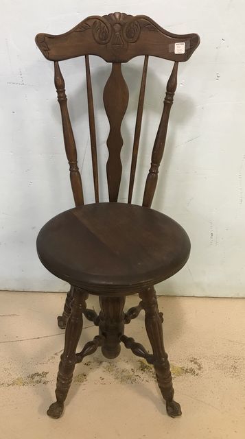 Vintage Victorian Piano Stool, is adjustable, but is seized up, glass claw feet, has age wear, 36"h. Vintage Victorian Piano Stool, is adjustable, but is seized up, glass claw feet, has age wear, 36"h.