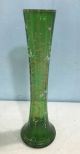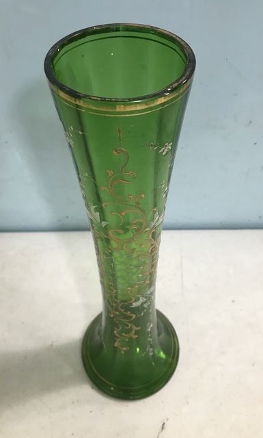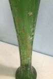 Vintage Emerald Green Tall Vase, hand painted floral design, 16"h. Vintage Emerald Green Tall Vase, hand painted floral design, 16"h.