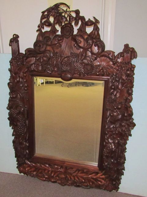 Grinling Gibbons Reproduction Large Carved Mirror, very ornate, some small pieces missing, 65"h., 48"w. Grinling Gibbons Reproduction Large Carved Mirror, very ornate, some small pieces missing, 65"h., 48"w.