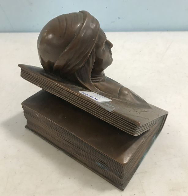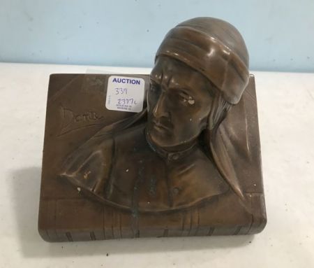 Vintage DANTE Brass Book Bookend Bust felt bottom missing, 6"h., 6"w. Vintage DANTE Brass Book Bookend Bust felt bottom missing, 6"h., 6"w.