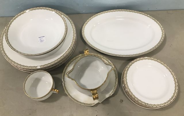 Haviland & Co. "Memphis Queensware Co." China Set, Memphis, Tenn. Haviland France, 8 dinner plates, 12 salad plates, 8 dessert plates, serving platters, 9 bowls (one has small chip), 12 saucers, 10 cups, tureen, also includes: damaged pieces, four dinner plates, platter, cups, gravy boat, four dessert plates. Haviland & Co. "Memphis Queensware Co." China Set, Memphis, Tenn. Haviland France, 8 dinner plates, 12 salad plates, 8 dessert plates, serving platters, 9 bowls (one has small chip), 12 saucers, 10 cups, tureen, also includes: damaged pieces, four dinner plates, platter, cups, gravy boat, four dessert plates.