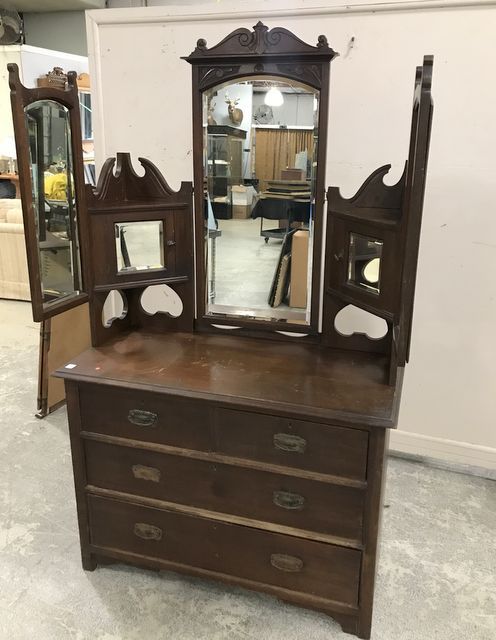 362 Vintage Dresser with Tri Fold Dressing Mirrors