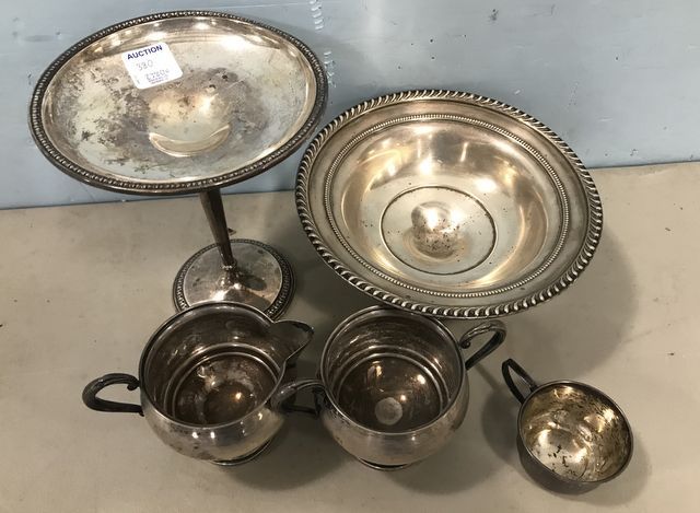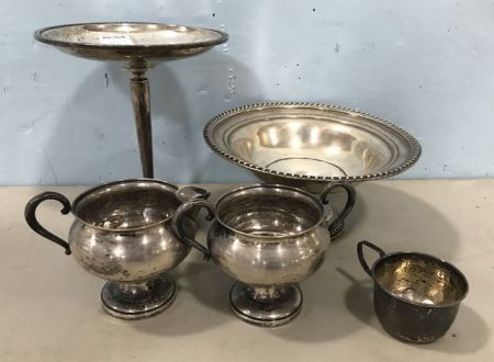 Group of Sterling Serving Pieces, Sterling weighted compotes, sugar, creamer, and cup. Group of Sterling Serving Pieces, Sterling weighted compotes, sugar, creamer, and cup.
