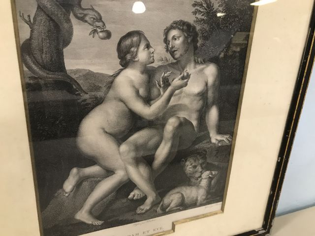 Adam Et Eve Print, Defsine par Dubois, framed, 20"h., 17"w. Adam Et Eve Print, Defsine par Dubois, framed, 20"h., 17"w.