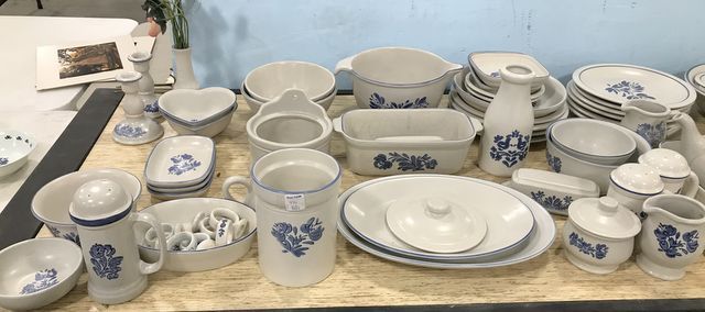 Huge Set of Pfaltzgraff Yorktowne Ceramic Serveware, Candle holders, vases, containers, dinner plates, serving bowls, goblets, cups, trays, salad bowls, napkins rings, salt & pepper, pitchers, butter dish, heart shaped dish and many more. Over 100 pieces. Huge Set of Pfaltzgraff Yorktowne Ceramic Serveware, Candle holders, vases, containers, dinner plates, serving bowls, goblets, cups, trays, salad bowls, napkins rings, salt & pepper, pitchers, butter dish, heart shaped dish and many more. Over 100 pieces.