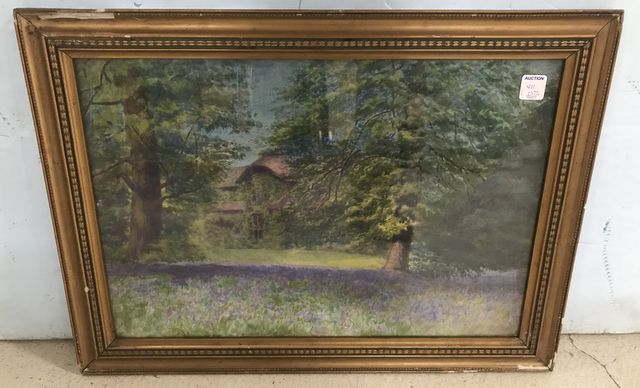 Cottage "Blue Bell" Watercolor by Douglas Joseline, No. 1, framed 17"h., 23"w. Cottage "Blue Bell" Watercolor by Douglas Joseline, No. 1, framed 17"h., 23"w.