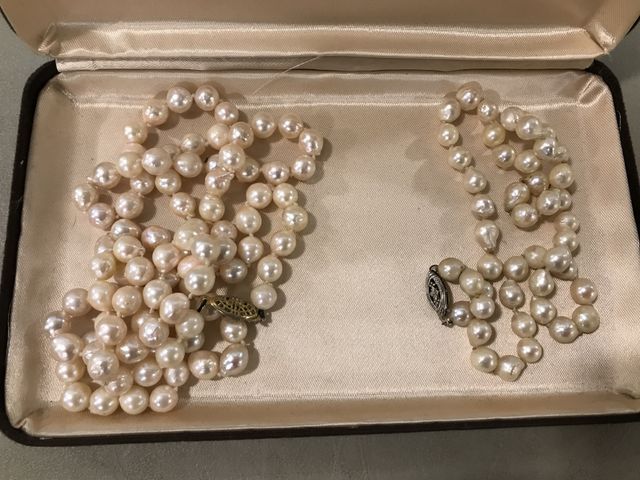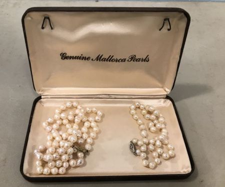 Two Mallorca Pearl Necklaces, with silver clasps. Two Mallorca Pearl Necklaces, with silver clasps.