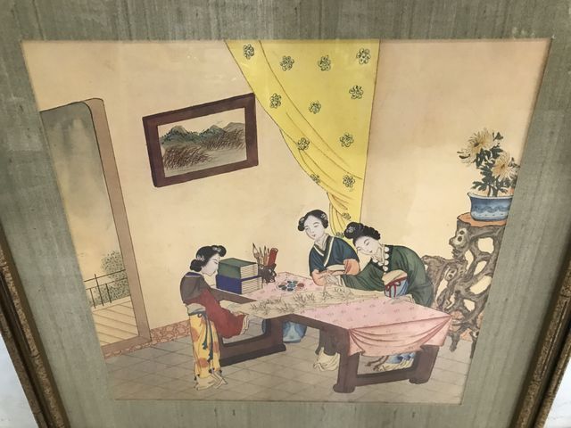 Vintage Geisha Framed Print, matted, glassed, 22"h., 23"w. Vintage Geisha Framed Print, matted, glassed, 22"h., 23"w.