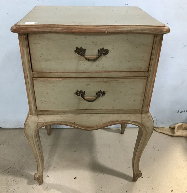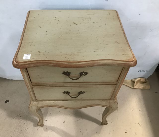 Painted French Style Night Stand, distressed, two drawer, 27"h., 18"w., 14"d. Painted French Style Night Stand, distressed, two drawer, 27"h., 18"w., 14"d.