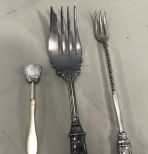 482 Mother of Pearl Sterling Band Meat Fork, Pickle Fork, and Scoop