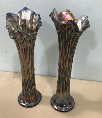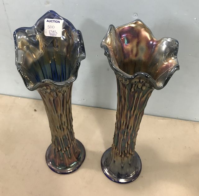 500 Pair of Carnival Glass Tree Trunk Cobalt Vases