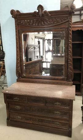 502 Antique Walnut Victorian Marble Top Dresser