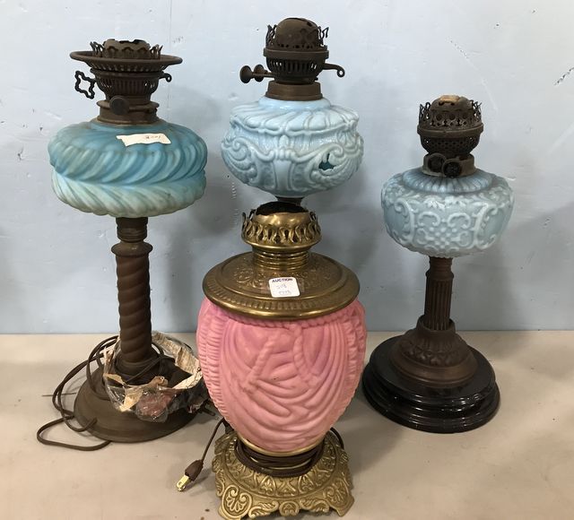 508 Four Vintage Glass Globe Lanterns and Lamp