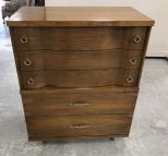 Mid century style chest of drawers, top drawers are serpentine, two bottom drawers, footed, good condition, 44"h., 34"w., 18"d. Mid century style chest of drawers, top drawers are serpentine, two bottom drawers, footed, good condition, 44"h., 34"w., 18"d.