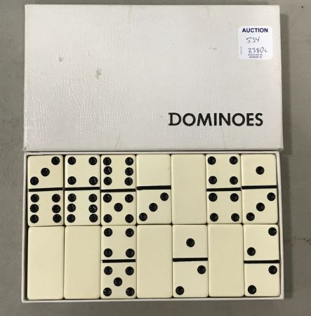 Set of Bone Vintage Dominoes, in white box. Set of Bone Vintage Dominoes, in white box.