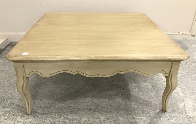 Wells Furniture Company New French Style Coffee Table, painted, french style, square top coffee table, good condition, 16"h., 38"w. Wells Furniture Company New French Style Coffee Table, painted, french style, square top coffee table, good condition, 16"h., 38"w.