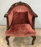 Mahogany French Style Parlor Chair, carved crest, red upholstery, with arms, 34"h. Mahogany French Style Parlor Chair, carved crest, red upholstery, with arms, 34"h.
