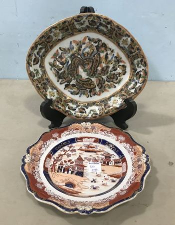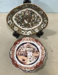 Real Iron stone China hand painted plate 9"dia., and hand painted porcelain butterfly dish 10"w. Real Iron stone China hand painted plate 9"dia., and hand painted porcelain butterfly dish 10"w.