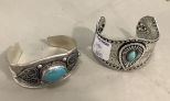 686 Two Ornate Metal Faux Turquoise Bracelets
