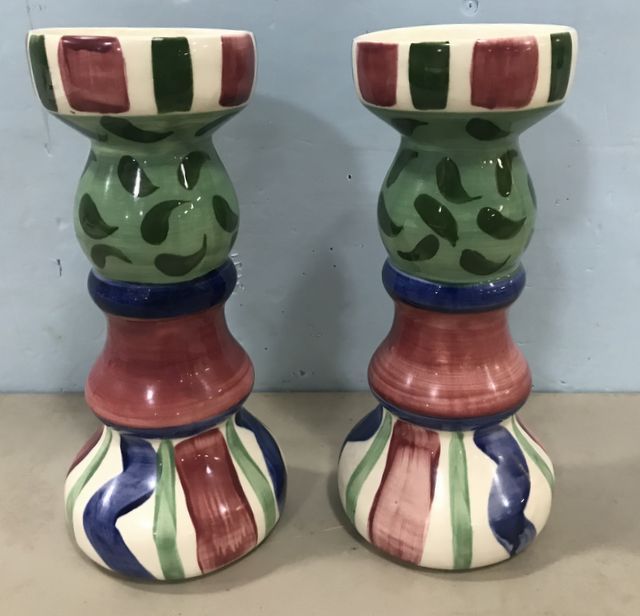 Pair of Vicki Carroll Hand Painted Vases, ceramic, hand made and painted, 1993, 10"h., Pair of Vicki Carroll Hand Painted Vases, ceramic, hand made and painted, 1993, 10"h.,