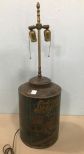 Vintage Theehandel Tin Tea Canister Lamp, converted table lamp, has some small dents, 30"h. Vintage Theehandel Tin Tea Canister Lamp, converted table lamp, has some small dents, 30"h.