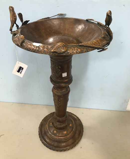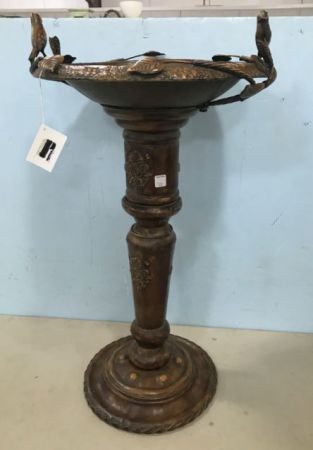 New Decorative Tin Bird Bath, rustic color, birds, 35"h., 18"dia. New Decorative Tin Bird Bath, rustic color, birds, 35"h., 18"dia.