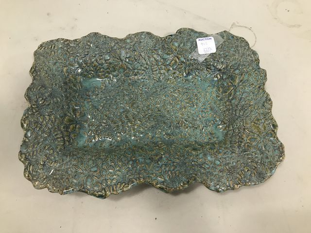 "Dirt Roads" by S. Grimes Pottery Dish, glazed, hand made, signed, 12"w., 9"d. "Dirt Roads" by S. Grimes Pottery Dish, glazed, hand made, signed, 12"w., 9"d.