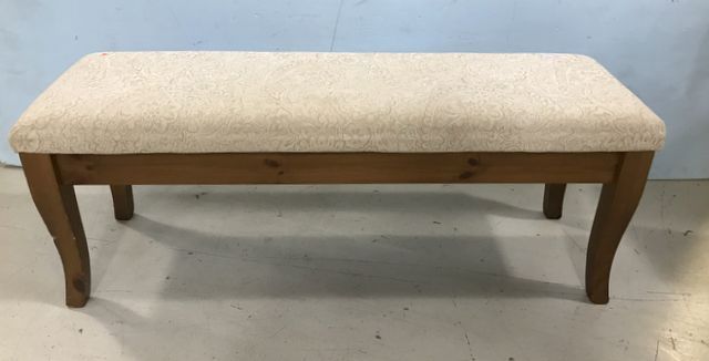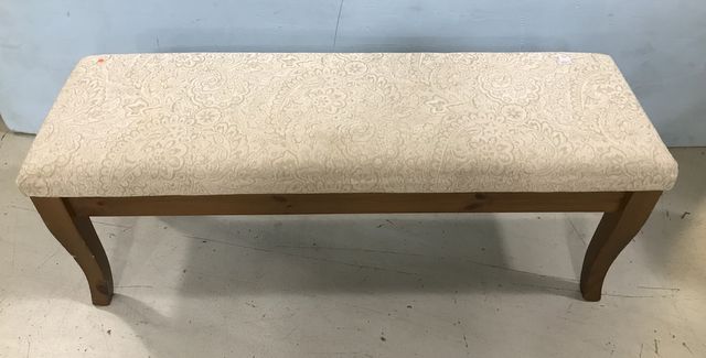 Primitive Style Window Bench, upholstered seat, modern piece, 19"h., 51"w. Primitive Style Window Bench, upholstered seat, modern piece, 19"h., 51"w.