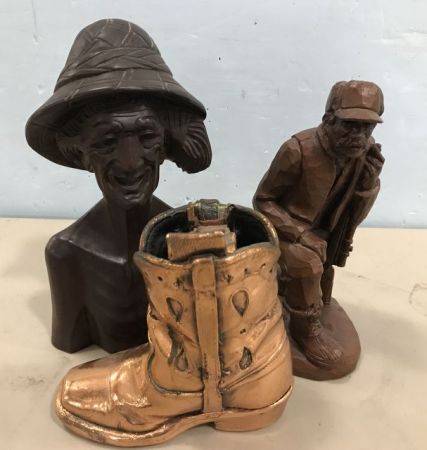814 Two Carved Figures and Brass Boot